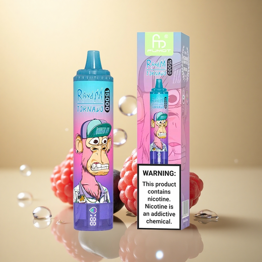 RandM Fumot Tornado 15000 Puffs אוכמניות פטל עם סוללת 850mAh וניקוטין 5%