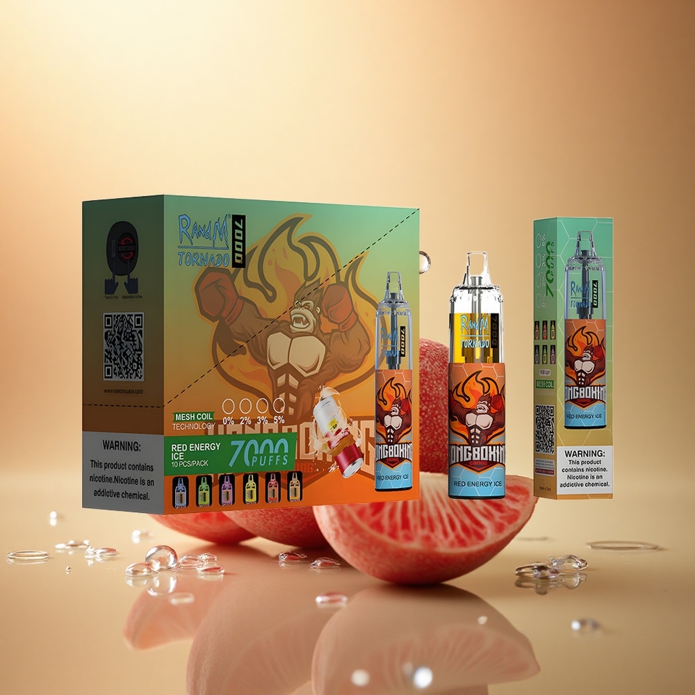 RandM Fumot Tornado 7000 Puffs אנרגיה אדומה קרח עם סוללת 850 mAh וניקוטין 5%
