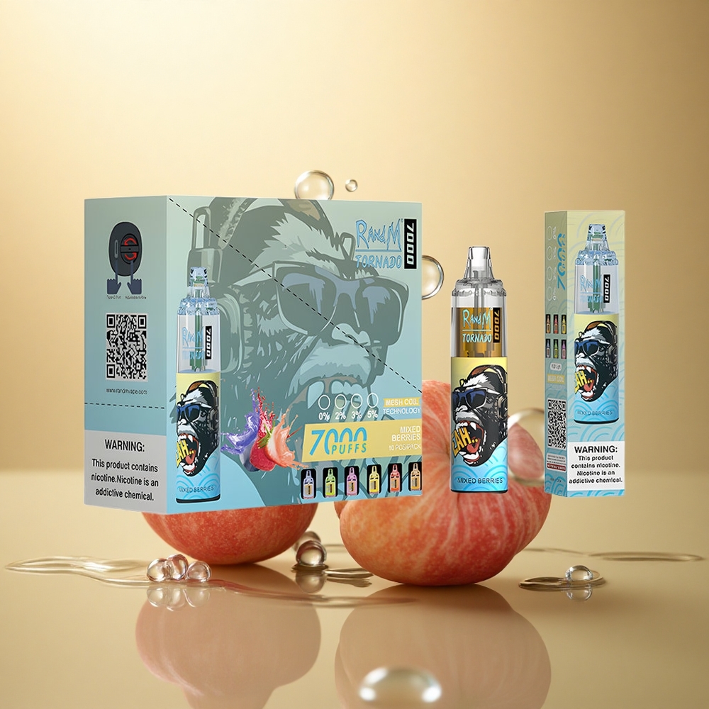 RandM Fumot Tornado 7000 Puffs ענבי יער מעורבים עם סליל משוט ומנהרה אוויר