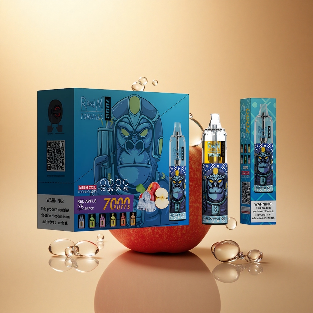 RandM Fumot Tornado 7000 Puffs תפוח אדום קרח עם סוללת 850mAh וניקוטין 5%