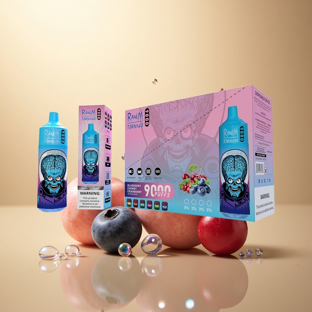 RandM Fumot Tornado 9000 Puffs אוכמניות דובדבן חמוציות עם סוללה 850 mAh וסליל משובץ