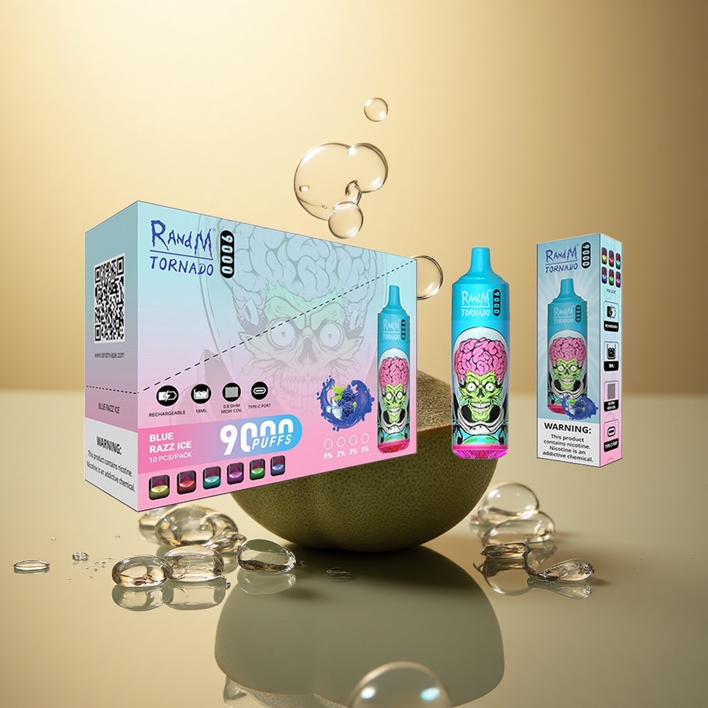RandM Fumot Tornado 9000 Puffs הדרקון השחור קרח עם סוללת 850 mAh וסליל מש