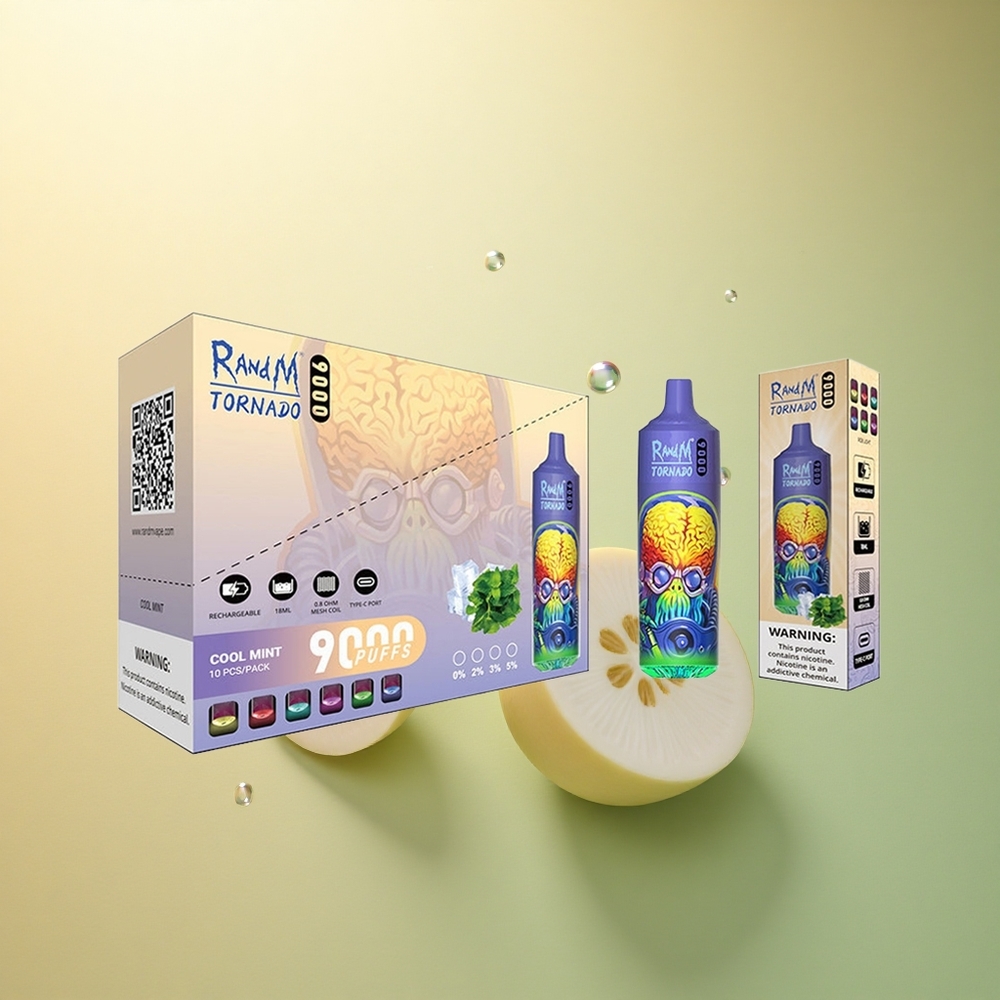 RandM Fumot Tornado 9000 Puffs מנטה קרירה עם סוללה של 850 mAh וסליל מש