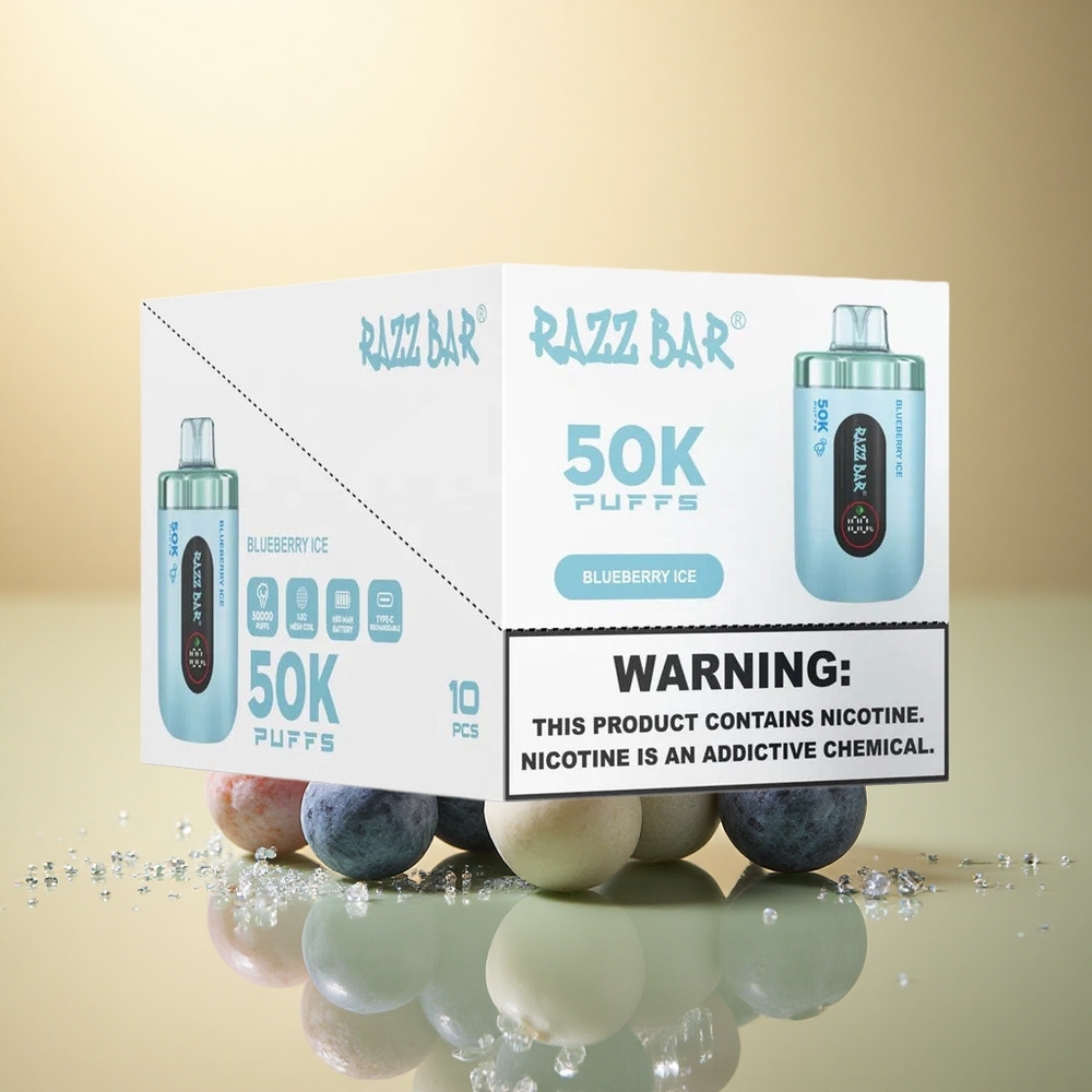 Razz Bar 50K Puffs אוכמניות קרח עם סליל מש 1.0 אוהם סוללת 650 mAh