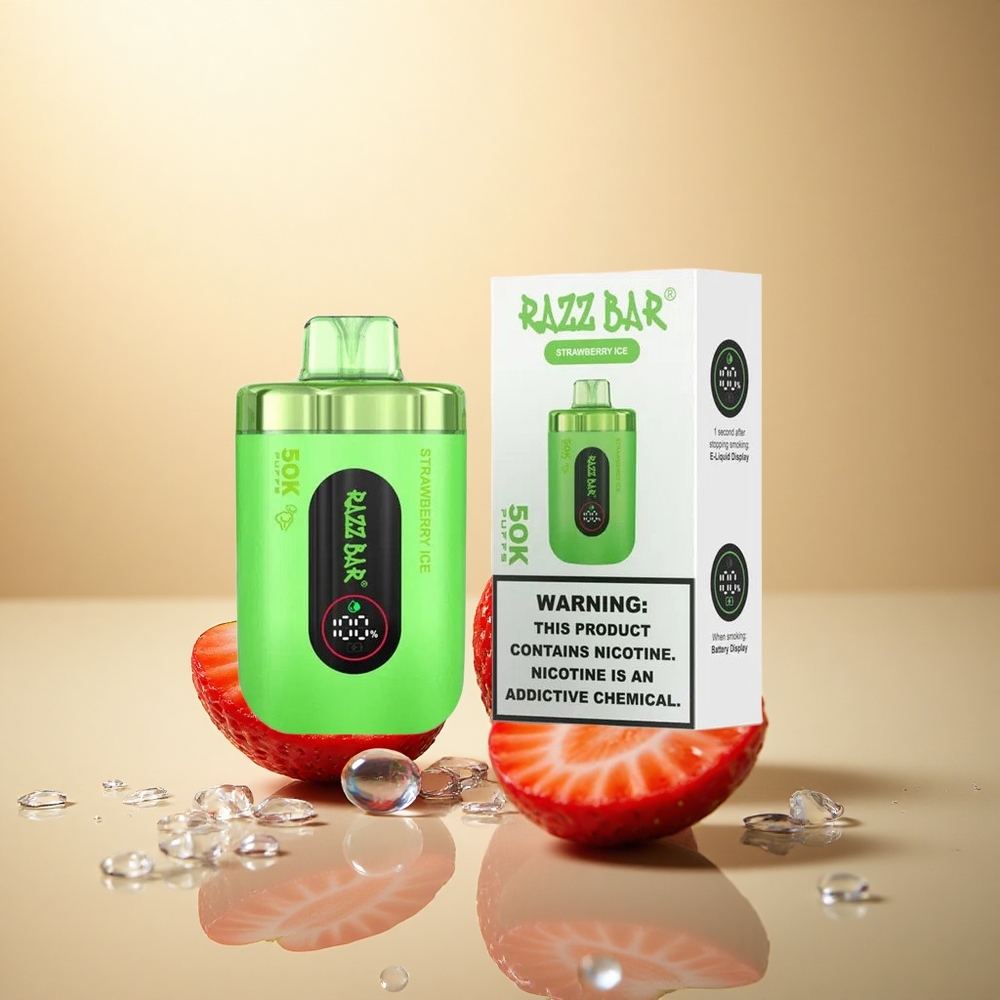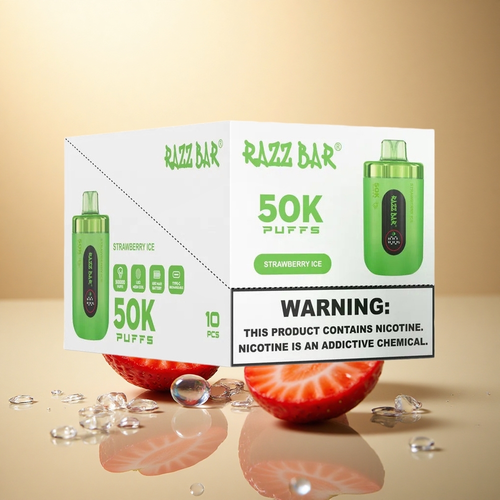 Razz Bar 50K Puffs תות קרח עם סוללת 650mAh ותוכן ניקוטין 2%
